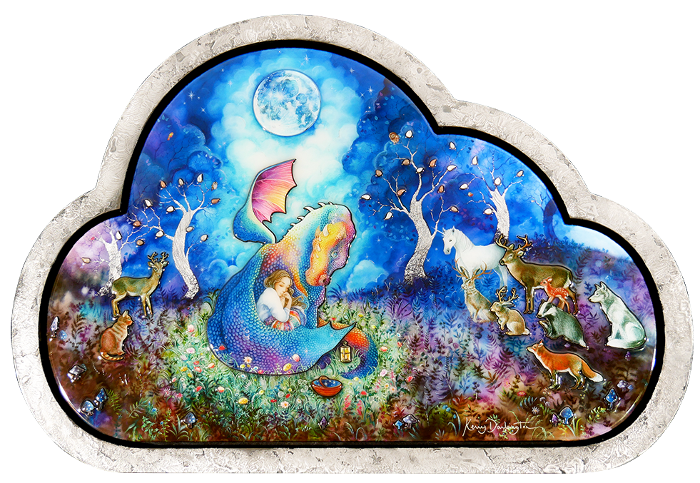 NB:- This is Kerry's first ever edition presented as a unique cloud shape artwork which will be framed in a silver tray.