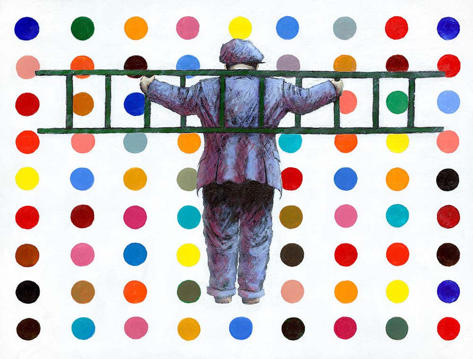 In this artwork, my gadgie 'Angel' keeps that same devil-may-care demeanour as he looks on the chaotic, modern world."