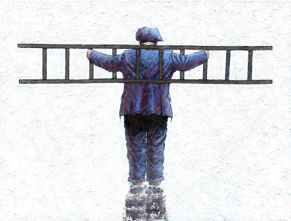 Instead of the sleek, minimal shape of the Anthony Gormley artwork, my 'gadgie' Angel had his signature, baggy, work suit and flat cap. Instead of arms (or wings) outstretched, he had his window cleaner's ladder across his shoulders.