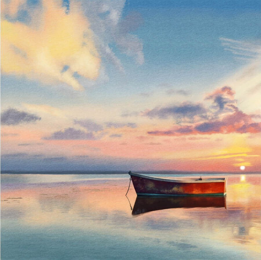 One of three new works, each a study of the power, beauty and emotional affect of the water, offering a space for reflection. Calm is an interpretation of a sunset, far away from our busy world, with the vastness of the ocean putting everything into perspective