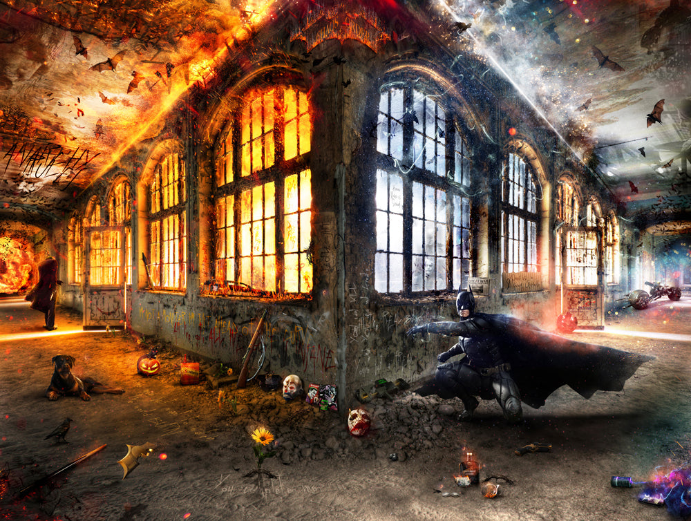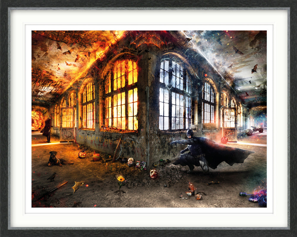 Way back in 2016 and as part of my ‘Lost in Hollywood’ collection, I created a Batman inspired image ‘KAPOW!’ that was an original only piece. It was a quirky and vibrant take on the period prior to the narrative turning seriously dark. So, there has been plans for an age to produce something that people will link to the darker side of Gotham. I have created some incredibly powerful pieces that focus on the mindset of the Joker, but I wanted to conceive an image that was more driven by Batman.