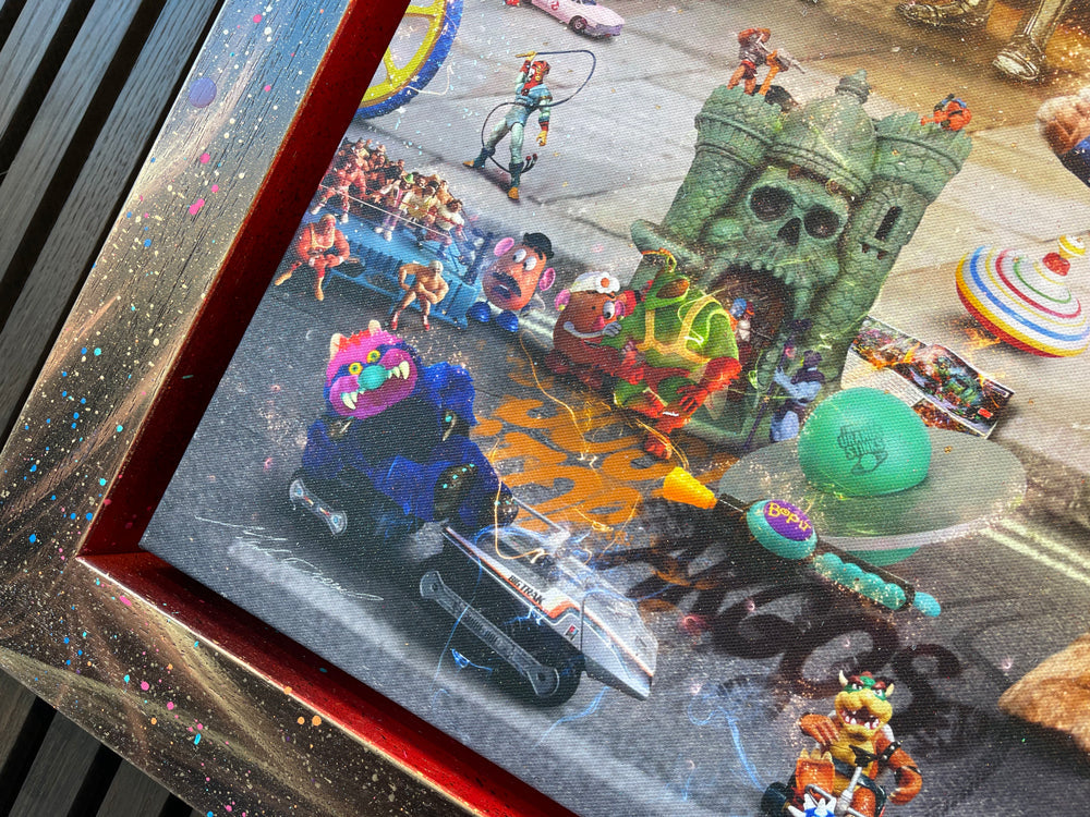 My portfolio is as diverse as it is huge but one thing that is for sure is that you thundering lunatics seem to consistently go nuts for how I portray the retro toys and games within my ‘Retrospective’ works. So, in the spirit of Christmas, feast your eyeballs on this chaotic beast!