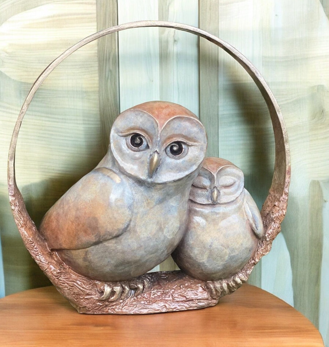 The owl sculpture here captures the nurturing bond between the two, highlighting the mother’s protective nature and the baby’s trust and contentment. This piece beautifully symbolises a mothers blend of wisdom and care.