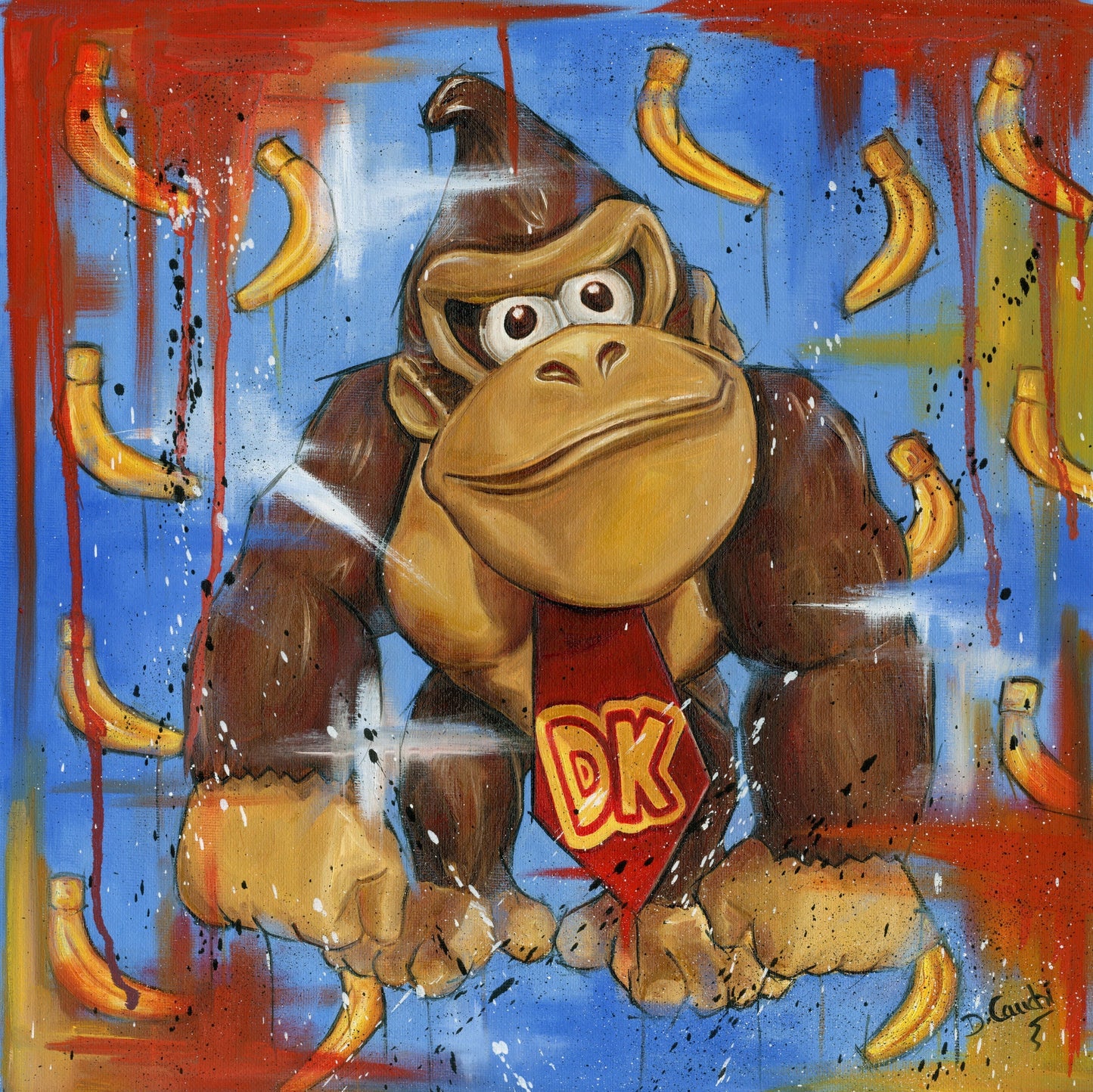 Add some playful nostalgia to your space with Deborah Cauchi's original Donkey Kong painting. This unique toy art piece combines gaming and art for a fun and quirky addition to any collection. (Caution: may cause sudden urges to play old school video games!)