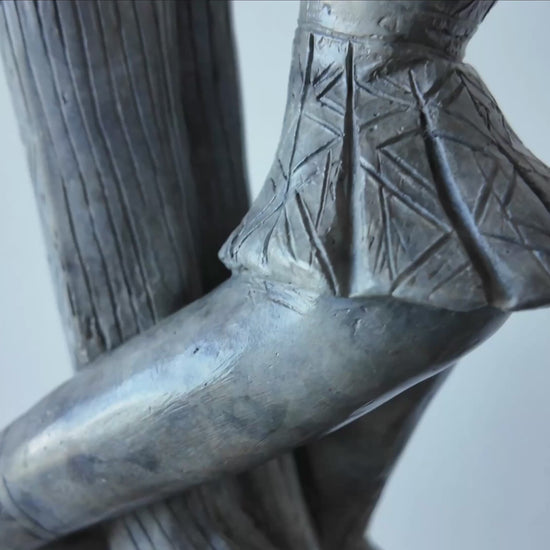 This sculpture captures the fleeting, elegant moment of a dancer’s Boléo Atrás. A backward flick of the leg suspended in time. The figure, elegantly poised, twists at the waist with her chest lifted and grounded in her partner’s invisible lead. Her free leg arcs behind her in a graceful yet powerful sweep, the motion frozen mid-whip like a ribbon caught in the wind.