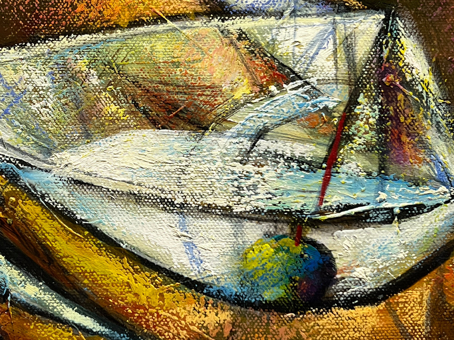 Dive into the playful world of romance with the Fortune Teller ORIGINAL by Andrei Protsouk! This stunning original painting features a boy and a girl enjoying a martini, but huddling around the glasses as though they are a crystal ball, and pretending to be a Fortune Teller. A playful ploy to secure another date perhaps?