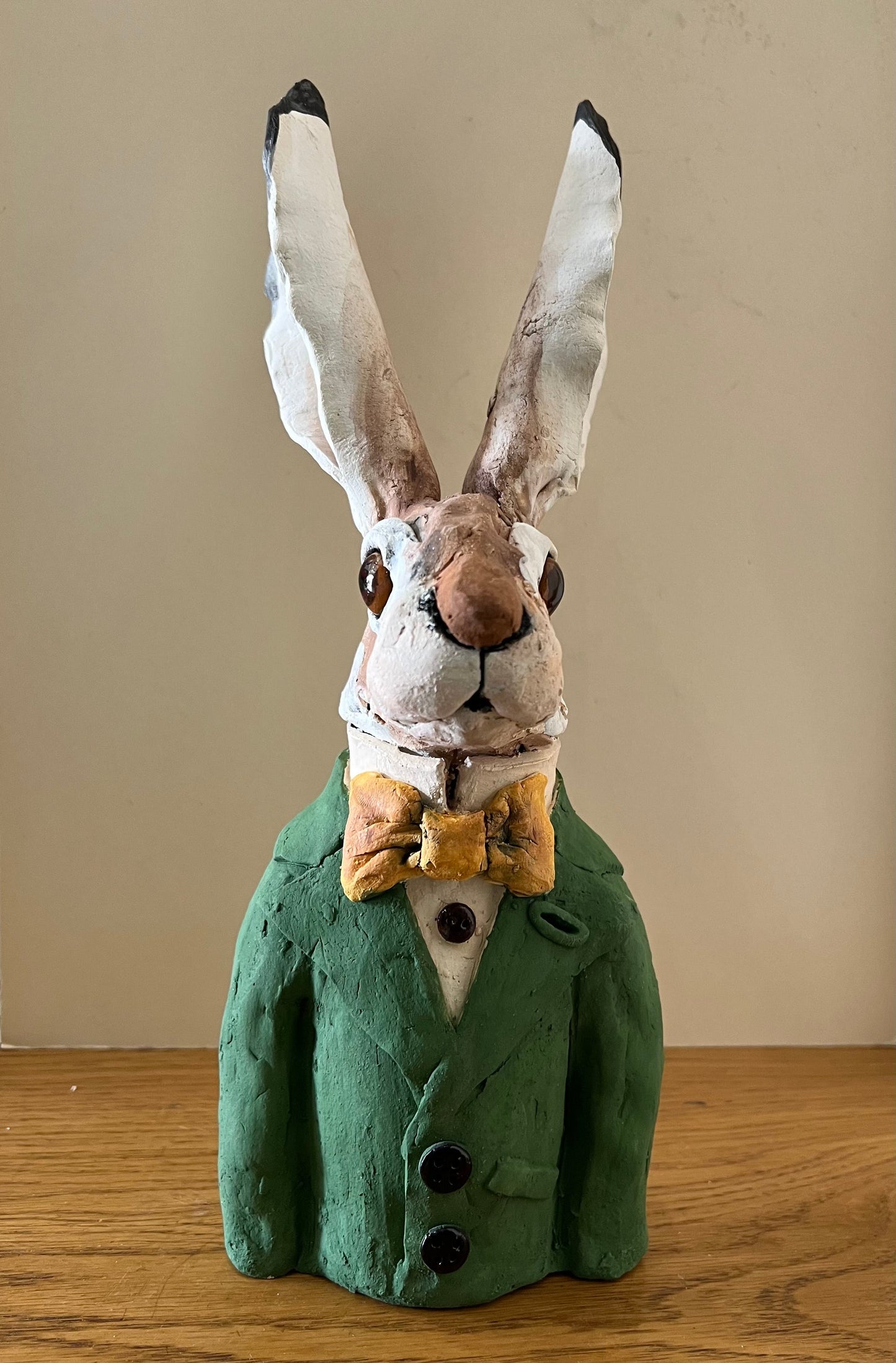 Hare Bust Yellow Bow Tie ORIGINAL Sculpture by Louise Brown SOLD