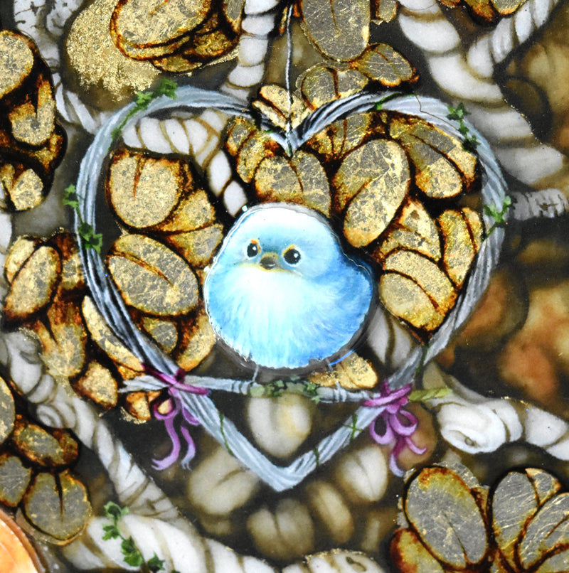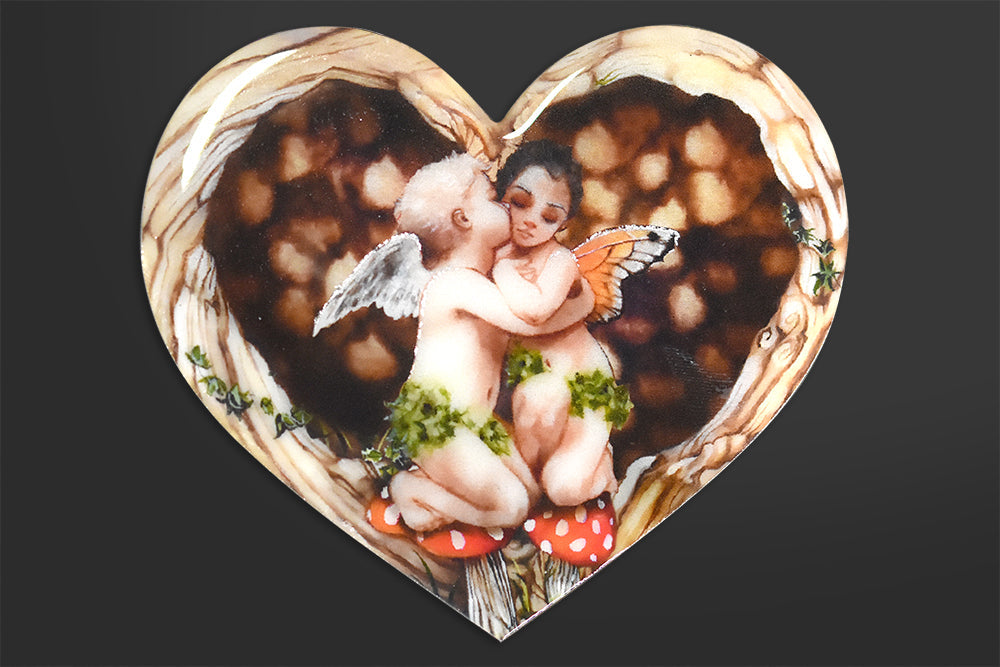 This gorgeous new heart shaped woodland piece from Kerry Darlingotn comes with a beautiful heart shaped charm showing two little cherubs.