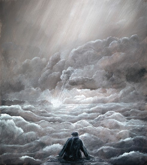 Hope by Mackenzie Thorpe is a limited edition printed taken from an original piece which was created using acrylic because Mackenzie really wanted to capture the froth and fury of these rolling clouds and the tempestuous seas.