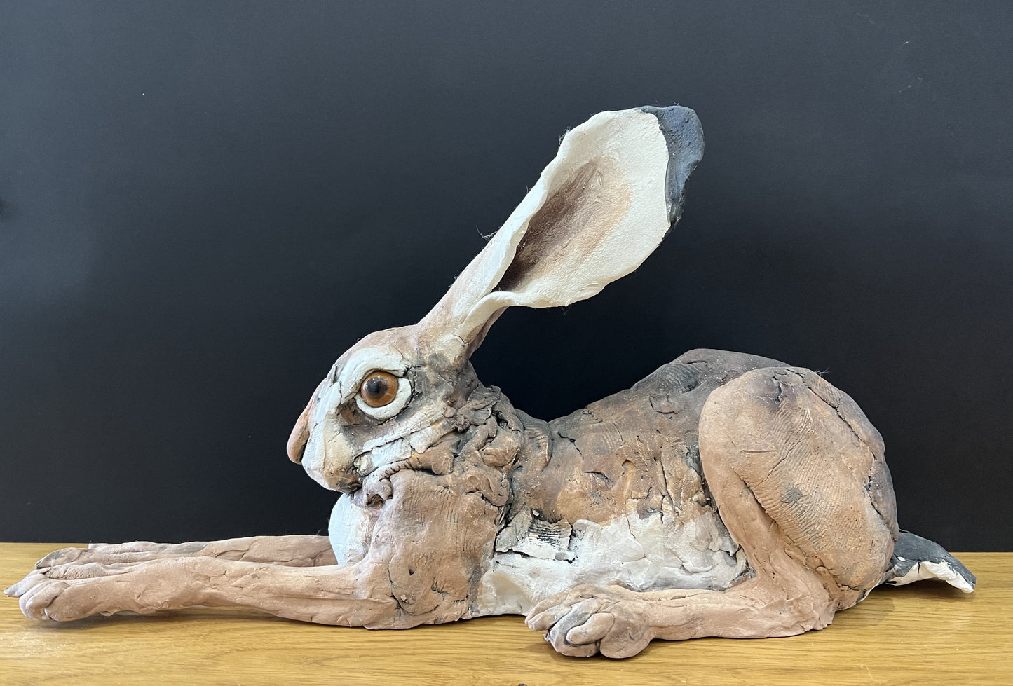 Hunched Up Hare ORIGINAL Sculpture by Louise Brown SOLD