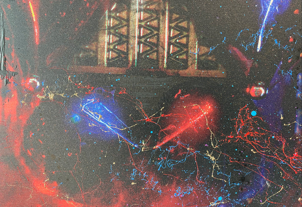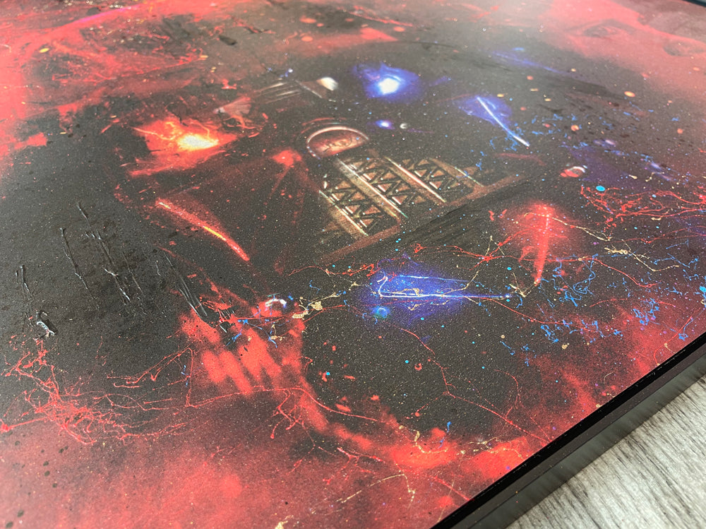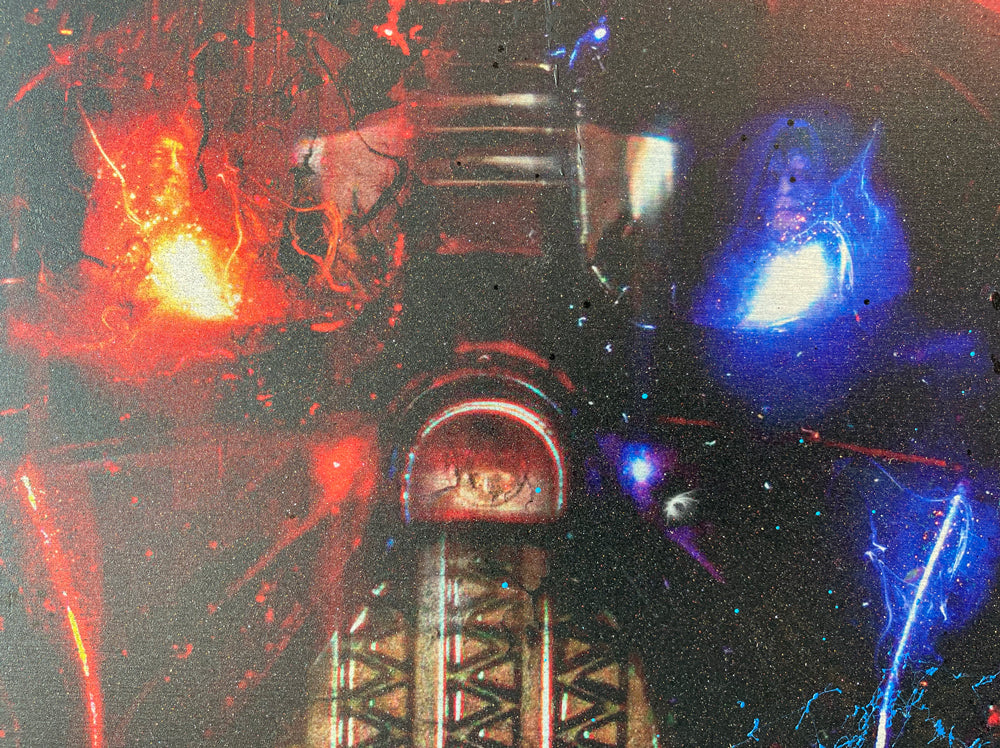 This ‘push and pull’ style of working is done with the intention of being able to really lay down the texture when creating the canvases as it allows me to work freely with adding hand-painted and sprayed detail. The hand embellished print editions are so vibrant, whilst the MDV offering (original variations) is so intense and detailed, as well as being a great size to make an impact without dominating. Then there is the captivating lenticular! If you are able to, then you really need to see it to see how it moves, it’s quite something! Then finally, something new for me! This is the first time that I have introduced a stunning brushed aluminium print edition that is set within a sleek aluminium frame. The end results are amazing and will without doubt be something that I will do again!