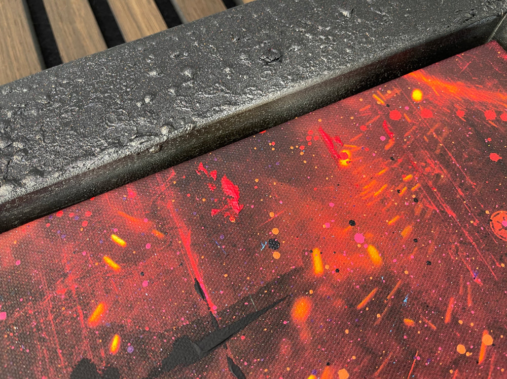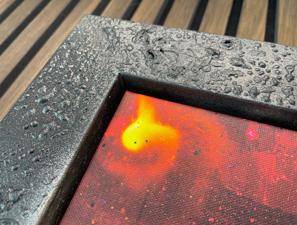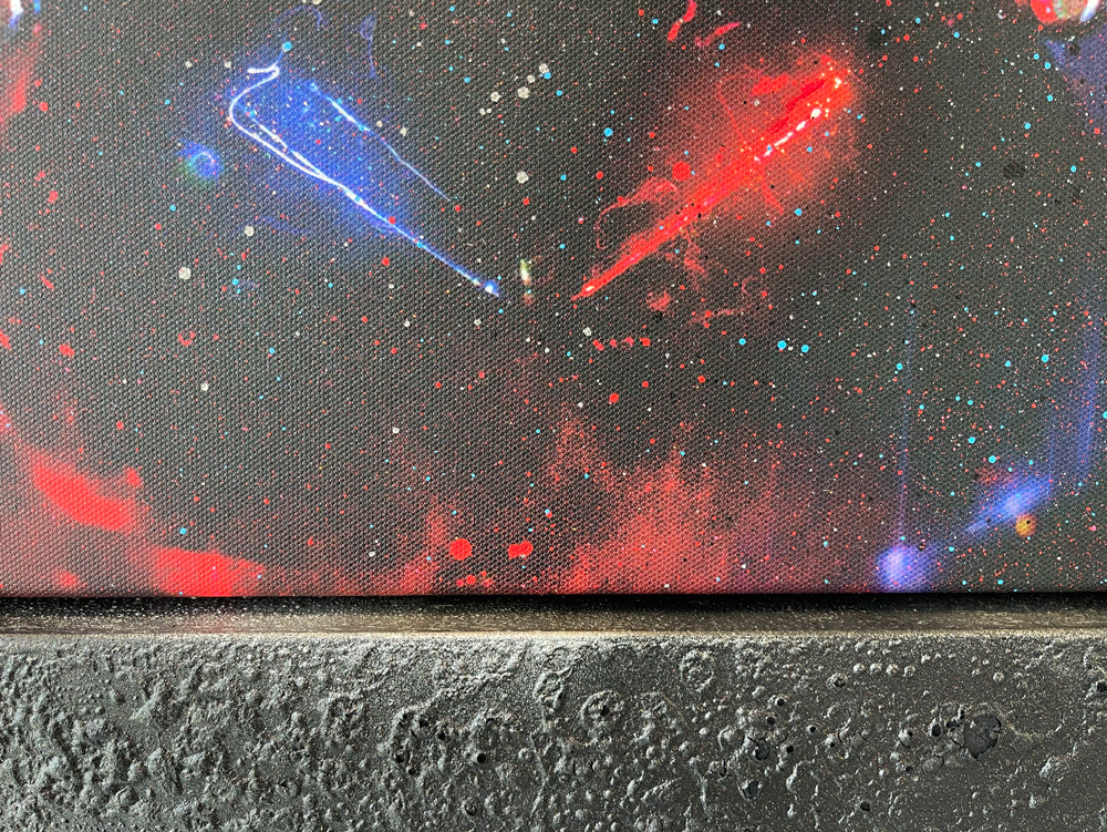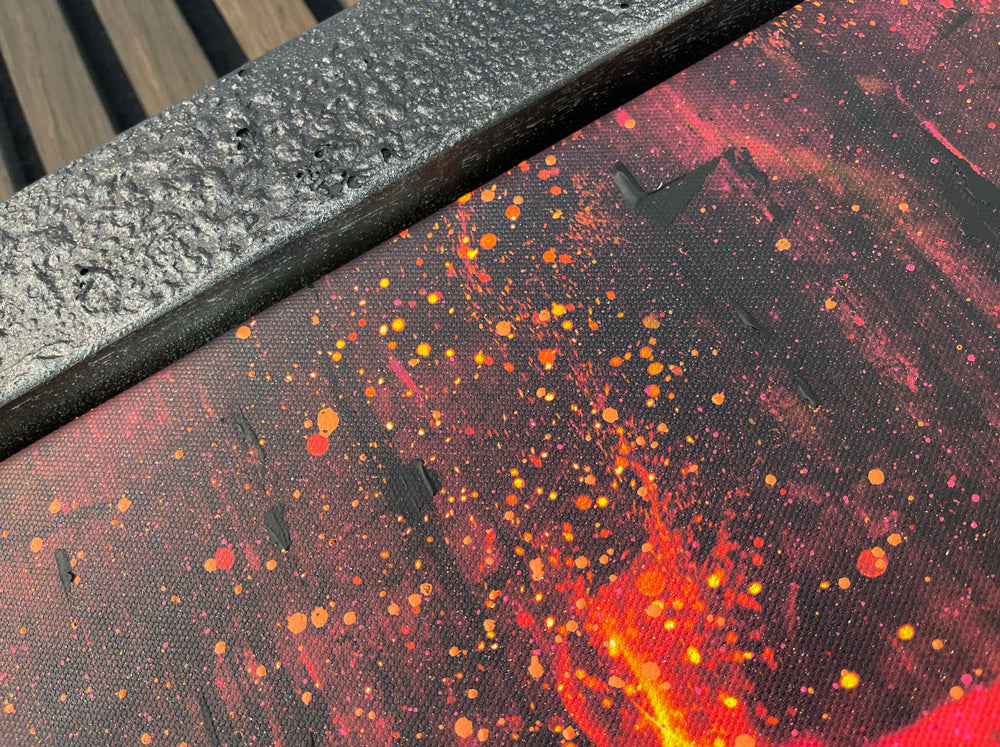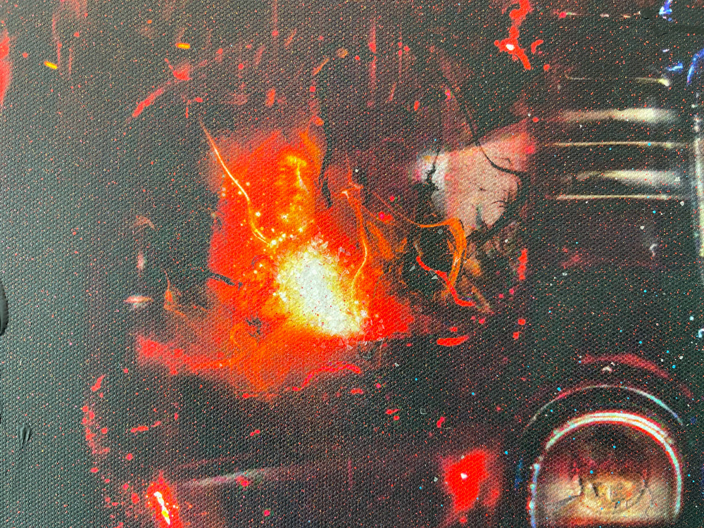 This ‘push and pull’ style of working is done with the intention of being able to really lay down the texture when creating the canvases as it allows me to work freely with adding hand-painted and sprayed detail. The hand embellished print editions are so vibrant, whilst the MDV offering (original variations) is so intense and detailed, as well as being a great size to make an impact without dominating. Then there is the captivating lenticular! If you are able to, then you really need to see it to see how it moves, it’s quite something! Then finally, something new for me! This is the first time that I have introduced a stunning brushed aluminium print edition that is set within a sleek aluminium frame. The end results are amazing and will without doubt be something that I will do again!