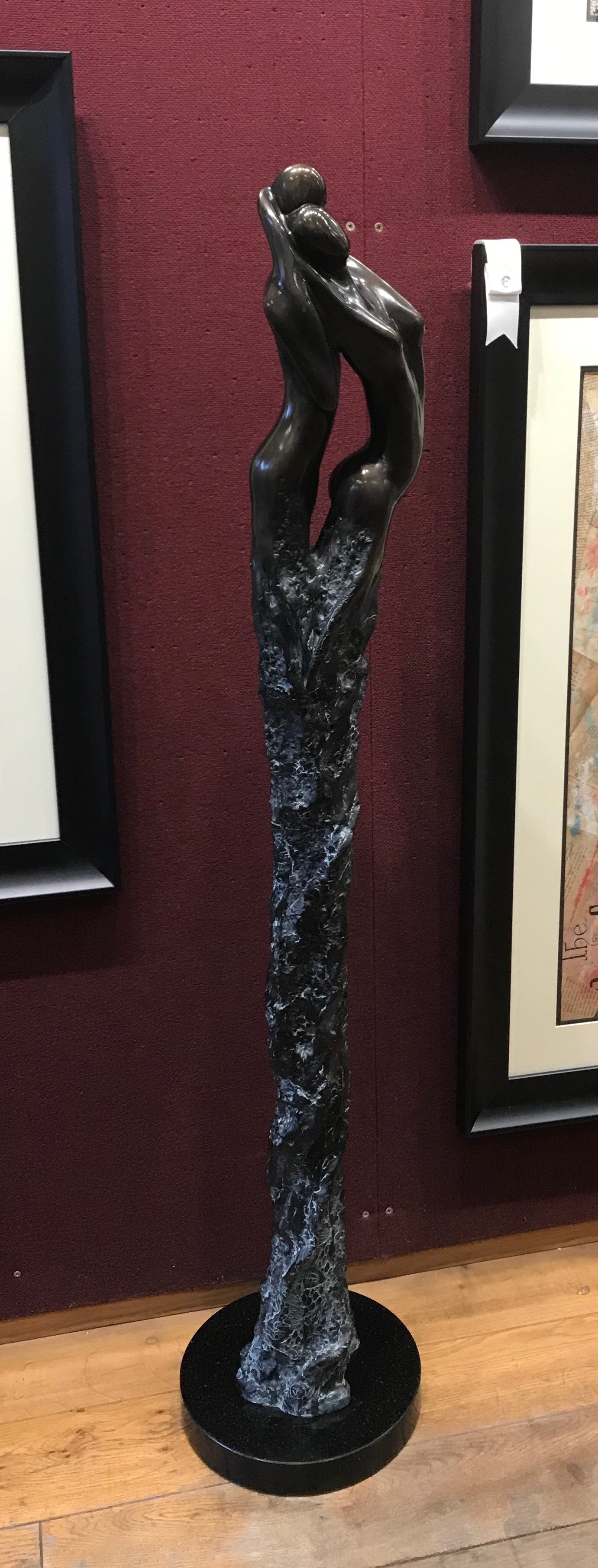 Elevate your space with the Intertwined II Deluxe Bronze Sculpture by Jennine Parker. Crafted with care by this master sculptor, this tall sculpture captures the essence of a couple's deep connection. Made of bronze, it adds a touch of sophistication and charm to any room. Take a risk and embrace the adventure with this masterpiece!