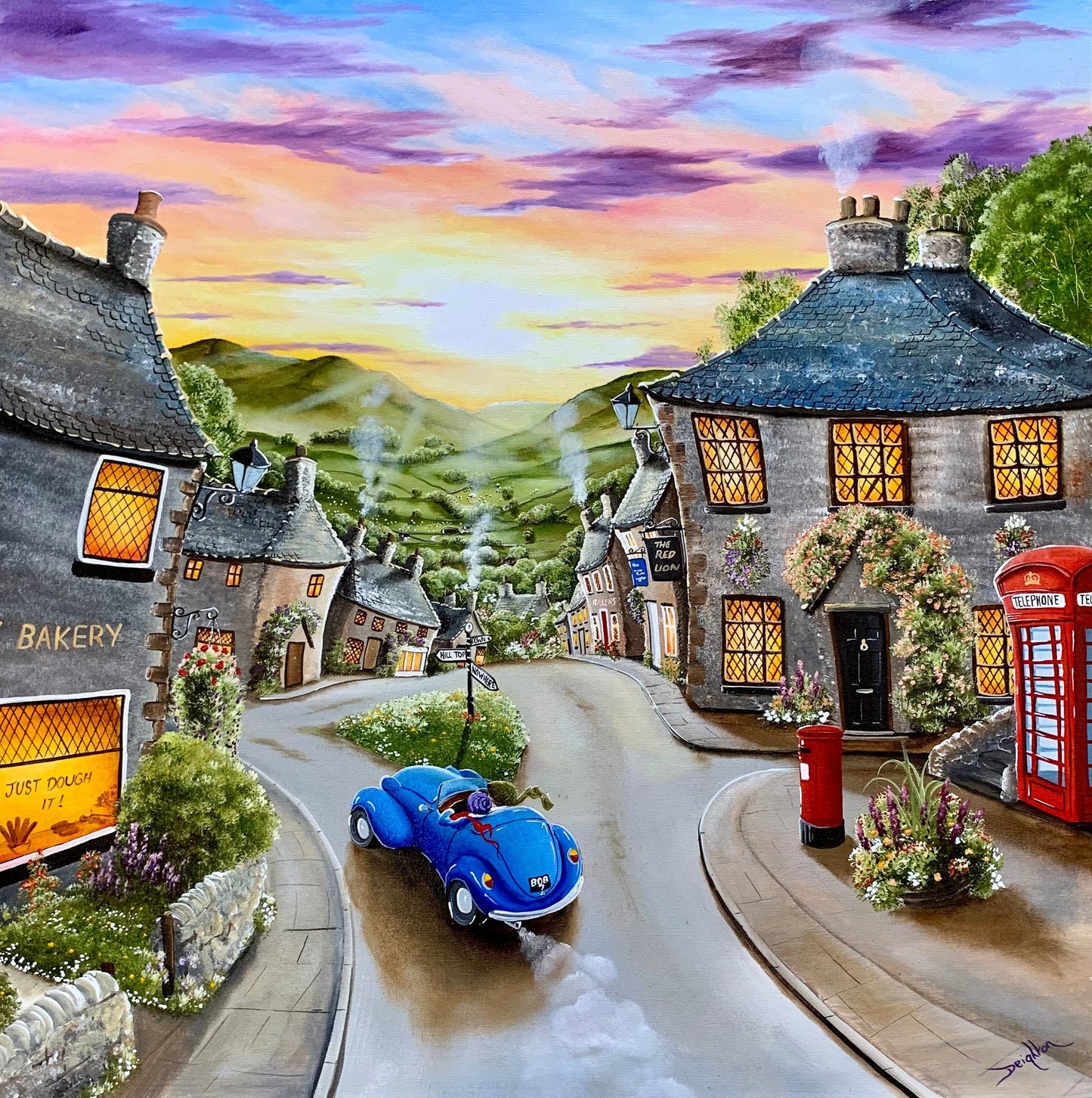 A fabulous Original painting by Caroline Deighton of a couple out exploring the countryside and have just spotted the bakery.