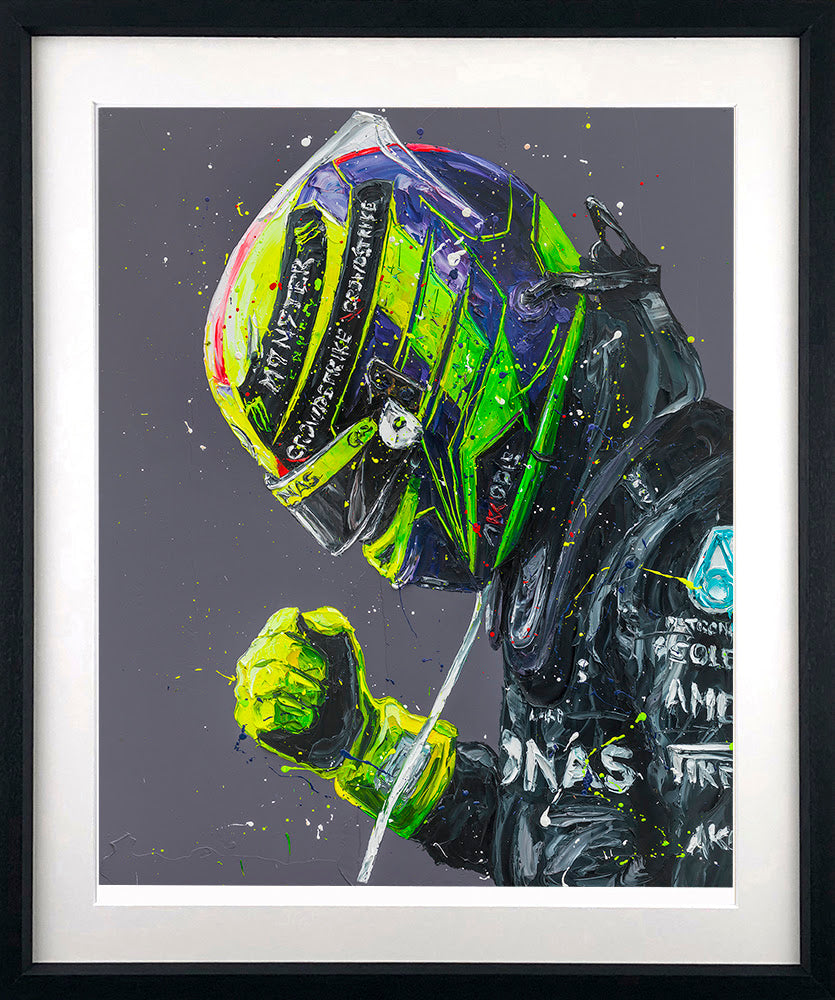 Paul's "Lewis '23" portrait is a direct depiction of Lewis's exit from the car at the end of the race.
