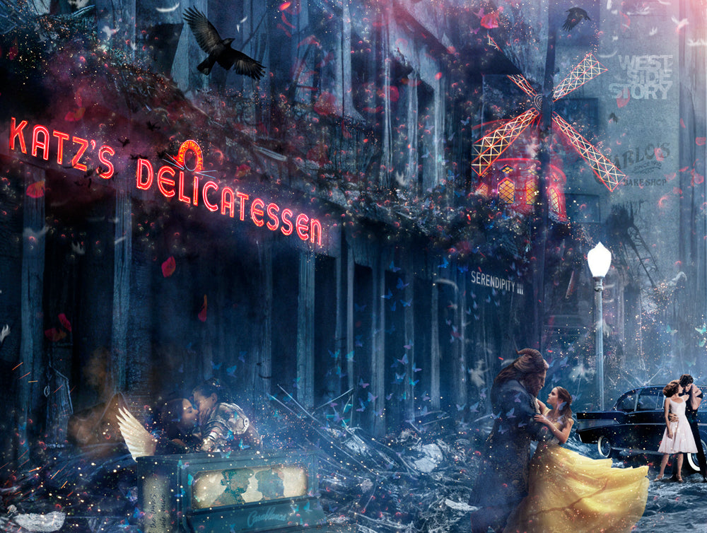 Deep eh! In concept yes, but visually no. This is a whole-heartedly positive image that is full-to-bursting with emotion, passion and detail. Combining cherished romantic movies such as ‘Casablanca’, ‘Gone With The Wind’, ‘Titanic’, ‘Lady & The Tramp’, West Side Story’, ‘Romeo & Juliet’, ‘Dirty Dancing’, ‘Ghost’, Beauty & The Beast’, ‘When Harry Met Sally’, ‘La La Land’, ‘Broke Back Mountain’, Pretty Woman’, ‘Love Actually’, ‘Notting Hill’, ‘Moulin Rouge’, ‘Mama Mia’, ‘Sleepless in Seattle’ and ‘The Notebook’!