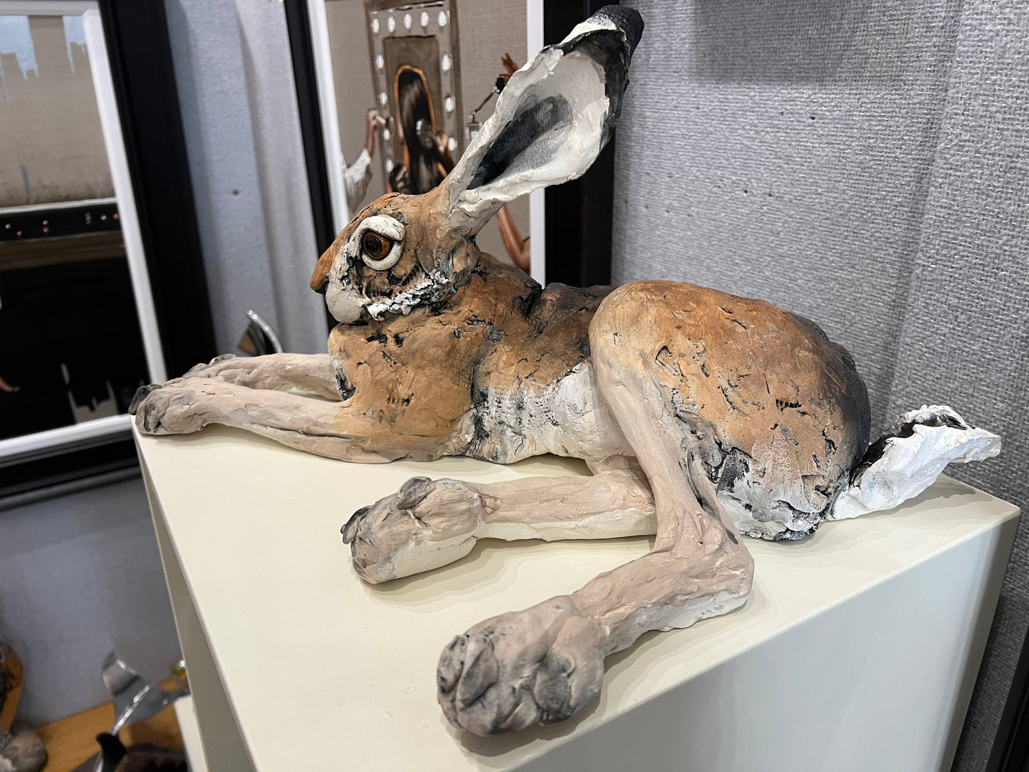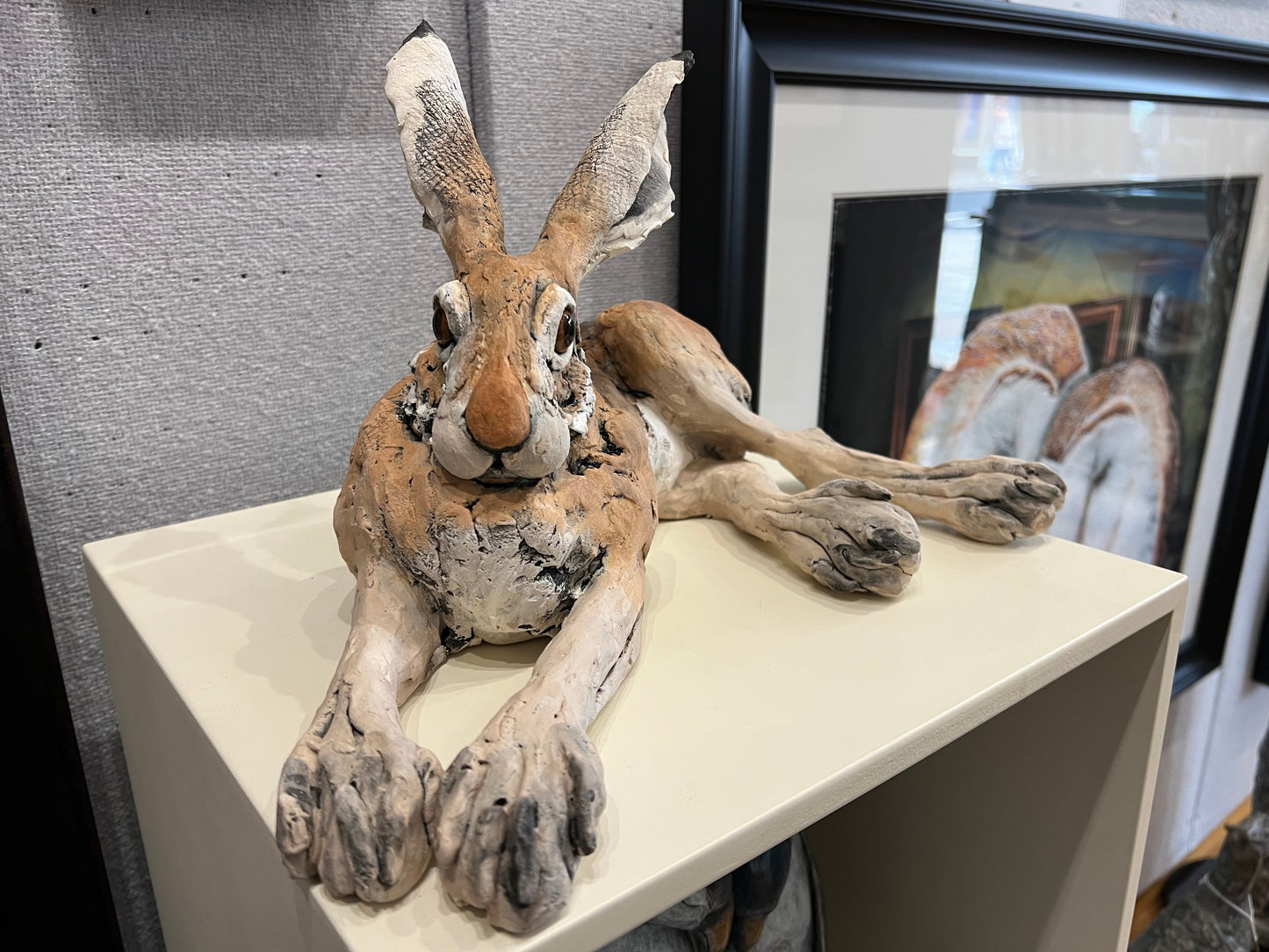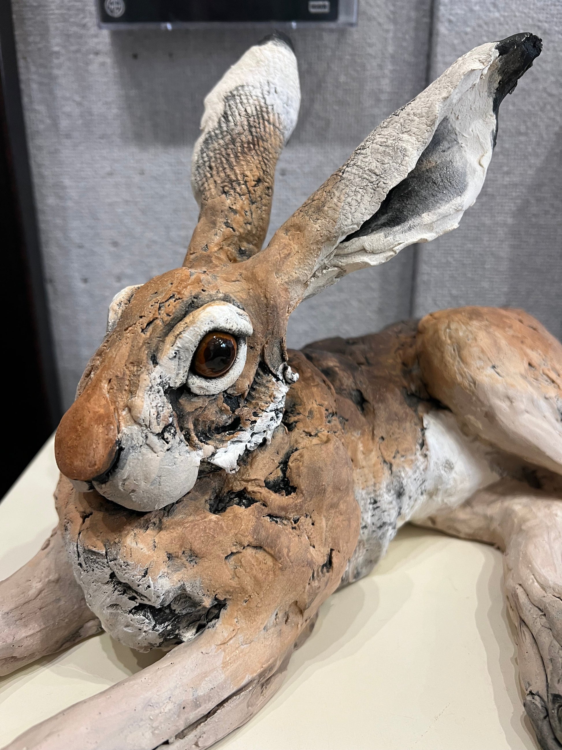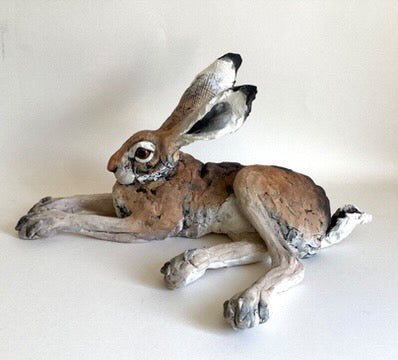 Lying Down Hare ORIGINAL Sculpture by Louise Brown SOLD