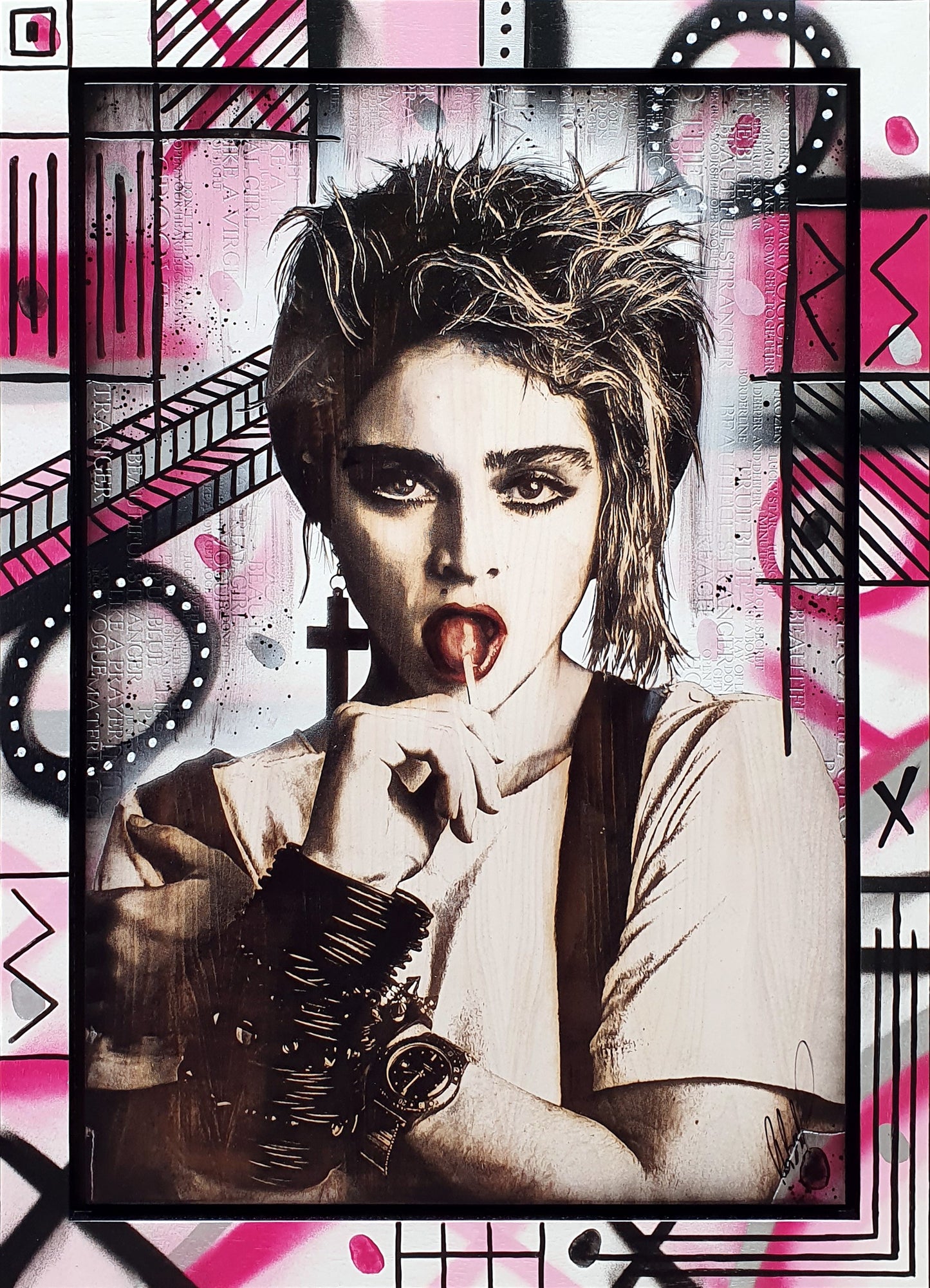 "I create the image digitally using a variety of techniques such as drawing with a tablet, image manipulation and collage. I engrave the image onto 12mm maple veneered board to give a 3D reference image which I develop by sketching in details. Only then can each piece be hand painted by building up many layers of wood stains and lacquer.