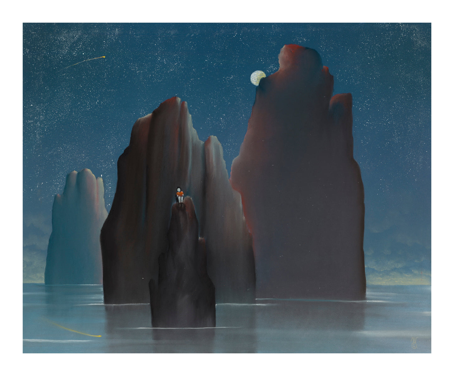 This gorgeous original pastel by Mackenzie Thorpe is just such a beautiful piece! The mood is quiet and calm and the stars really stand out, you truly can lose yourself in that sky