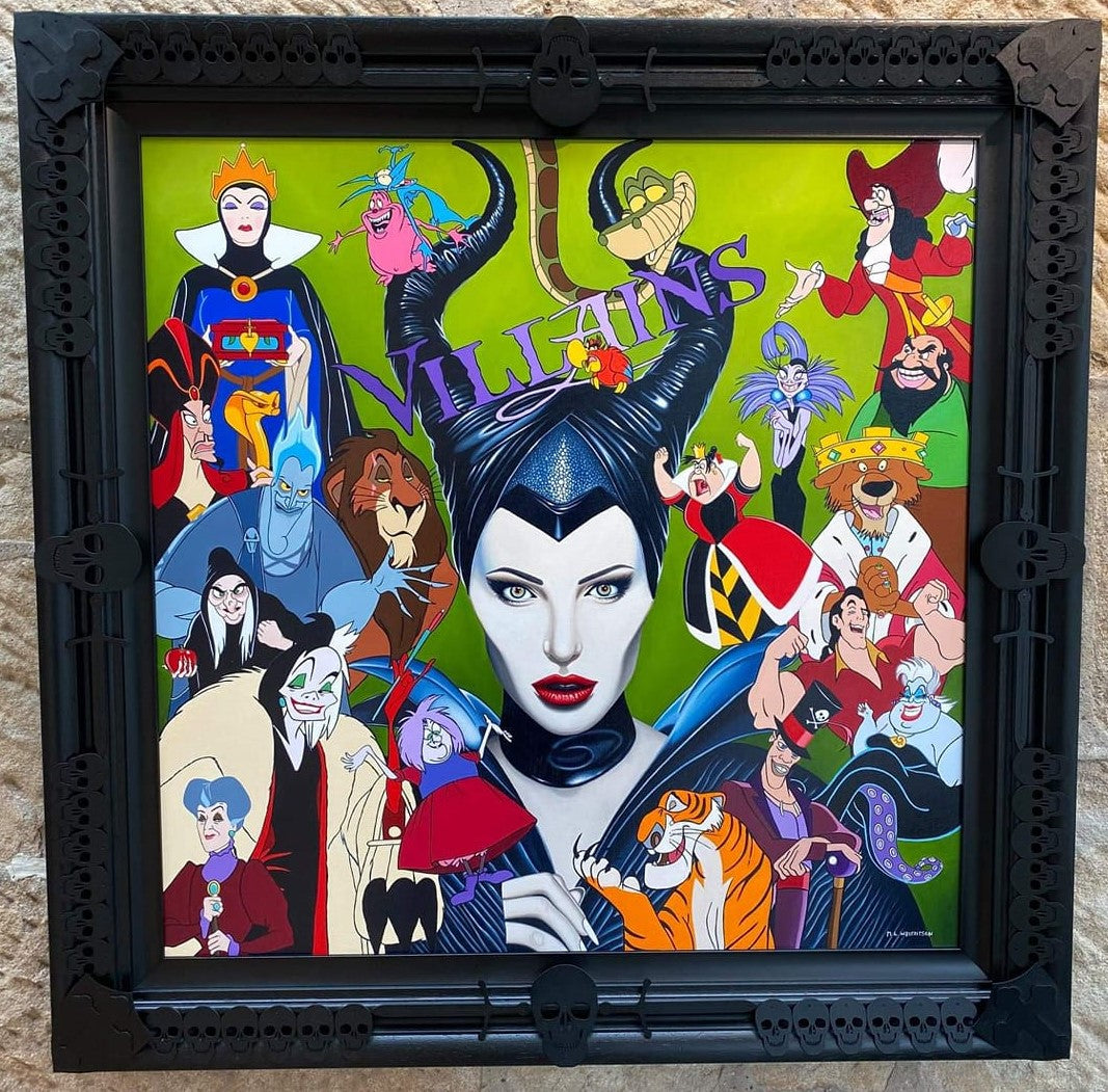 This original vivid painting of Maleficent, Mistress of All Evil, crafted by Marie Louise Wrightson, is a daring addition to any collection. Framed by hand, the stunning details capture the bold and powerful essence of the iconic villain. Take a risk and add this masterpiece to your display.