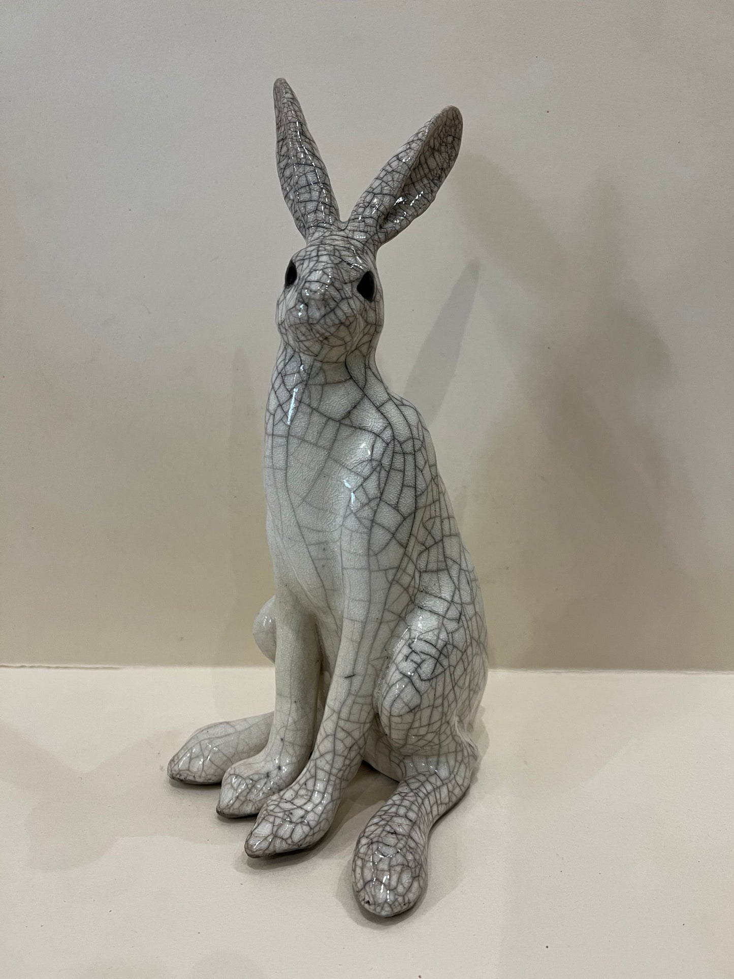 Medium Sitting Hare Raku Sculpture by Paul Jenkins