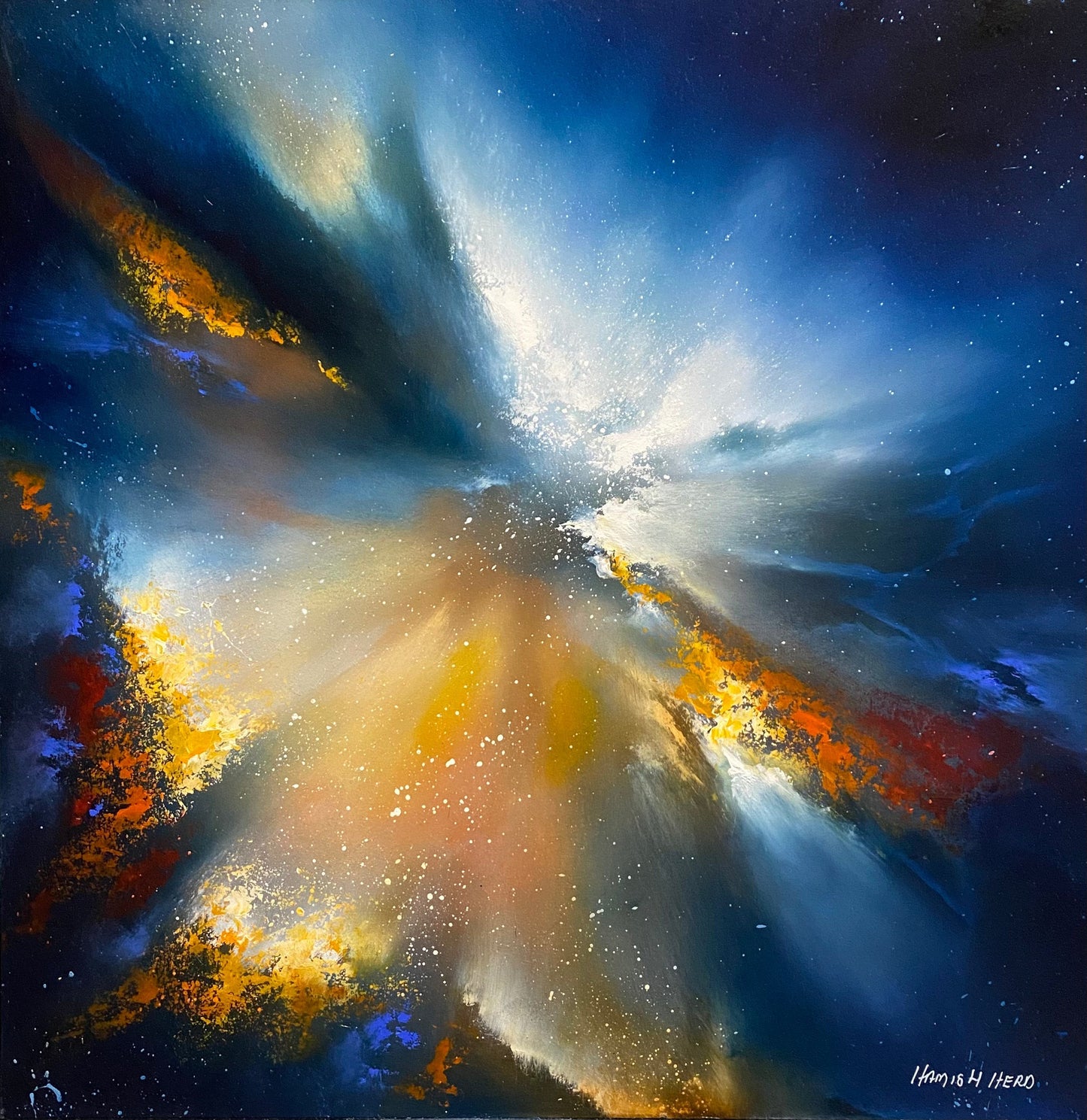 "New Beginnings" by Hamish Herd is an original abstract piece which evokes a sense of calm amidst the stormy seas. Let it transport you to a world of beauty and depth, handcrafted by the renowned artist himself.