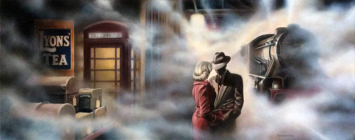 A classic brief encounter. The imagery of David Lean's 1945 film adaptation of Noel Coward's story resonates with my early memories from two decades later, as the age of steam neared its end. This scene, like most of my work, is purely imagined, yet everything in it still exists.