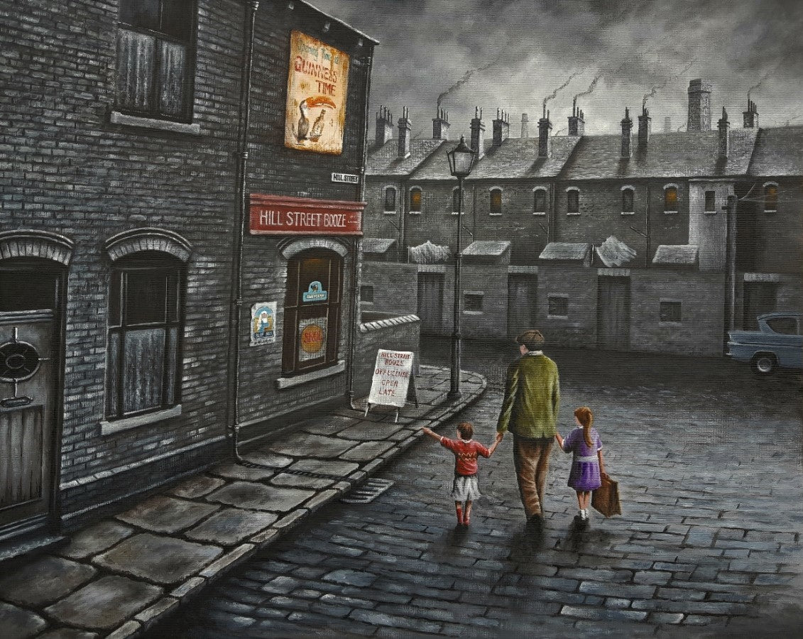 Have a closer look at Deetz's That's What Grandma Wants ORIGINAL oil painting! This one-of-a-kind piece captivates with its colourful street scene and cheeky narrative! Enjoy a unique perspective and get ready to laugh—Grandma would be proud!