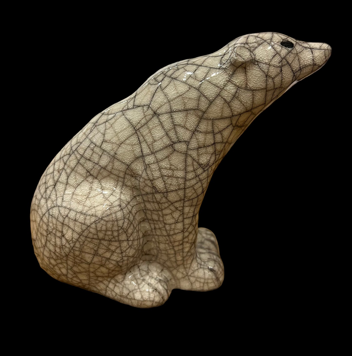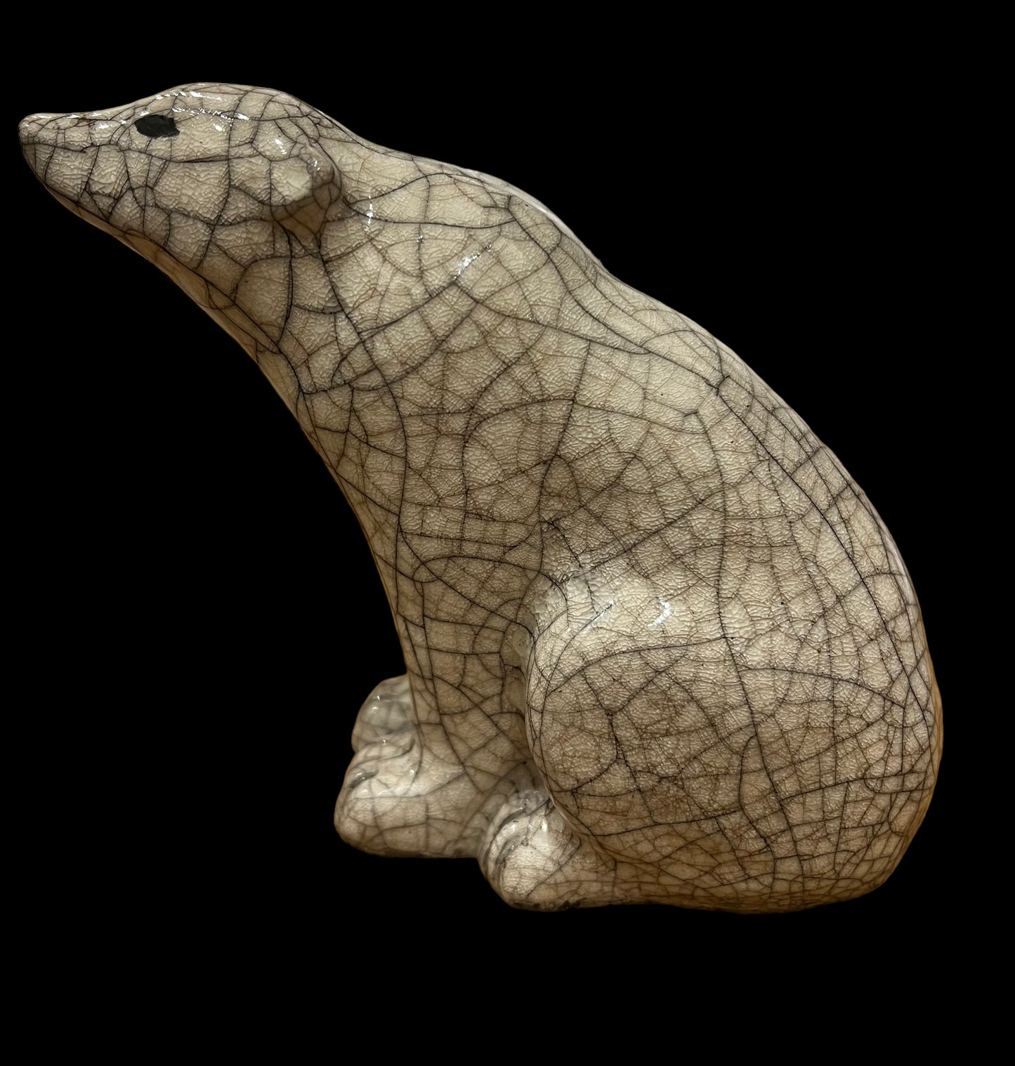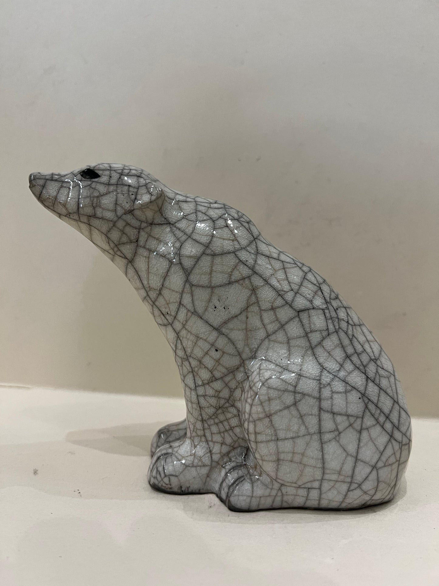 Every sculpture large or small takes approximately 2-3 weeks to make. Each one is hand crafted from a unique formulated clay. Bisque fired to a high temperature in a kiln. Glazed and then kiln fired for a second time and finally fired for a third time in a specially designed Raku kiln.