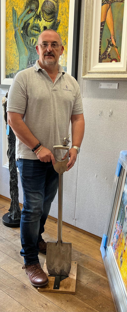 Introducing the Robin on Spade Original Steel Sculpture by Graham Anderton - an exquisite stainless steel sculpture designed to add a touch of elegance and sophistication to your outdoor space. Meticulously crafted from stainless steel, this exquisite piece features a full size garden spade topped with a detailed robin - perfect for adding an air of exclusivity to your flower beds! Experience the luxury of art right in your own garden with this stylish and tasteful sculpture.