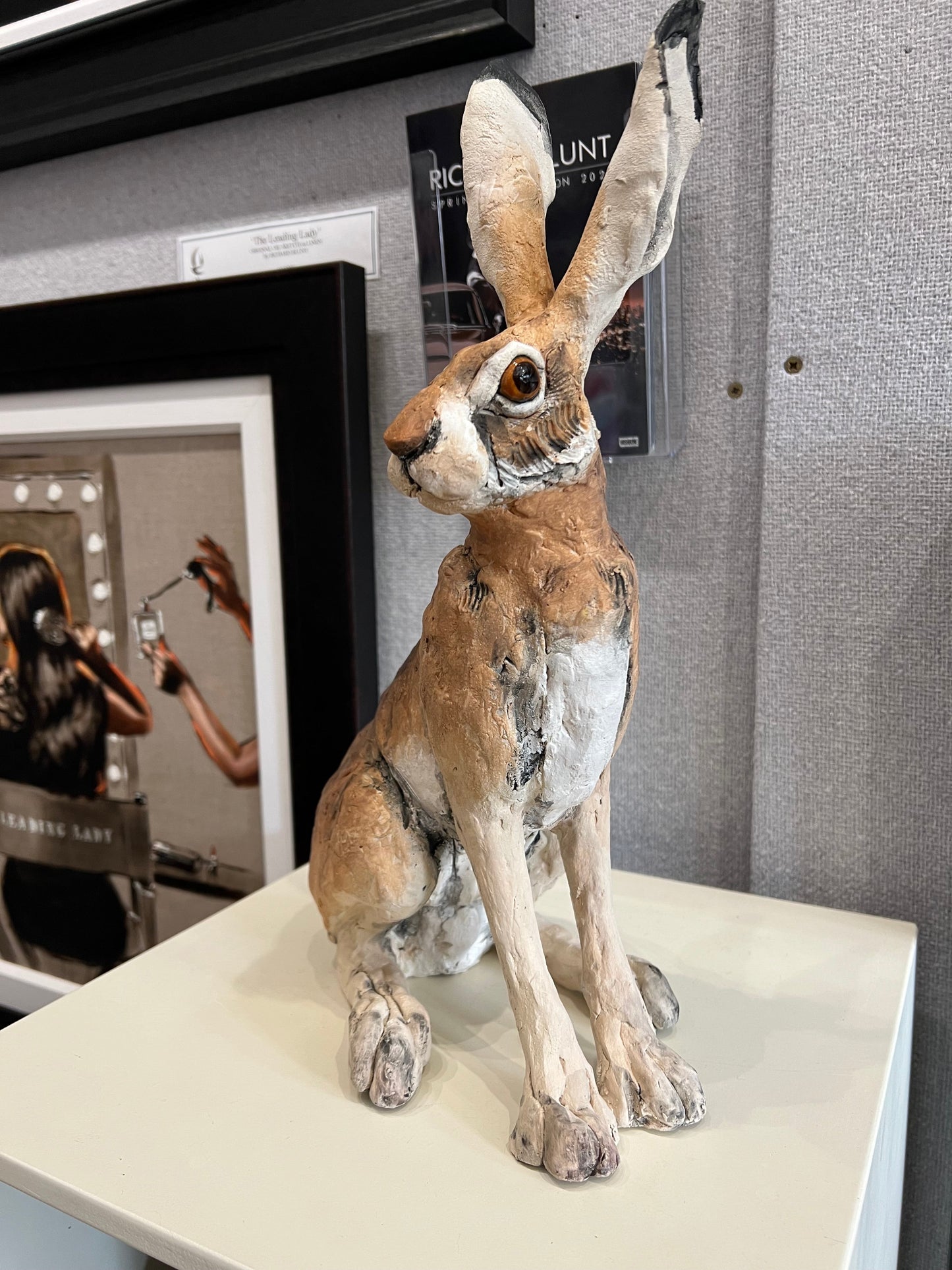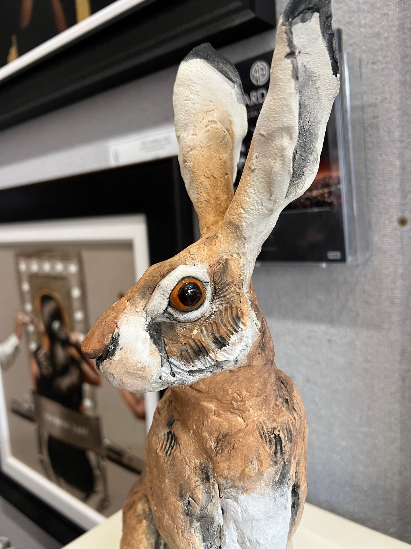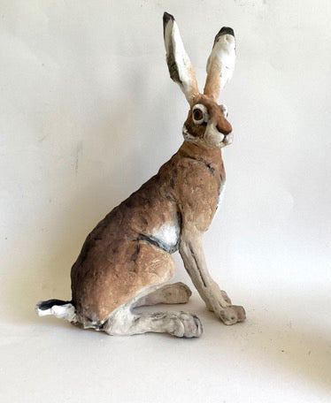 Small Sitting Hare Head Turned ORIGINAL Sculpture by Louise Brown SOLD