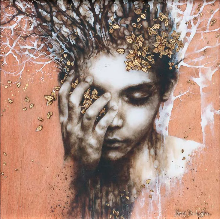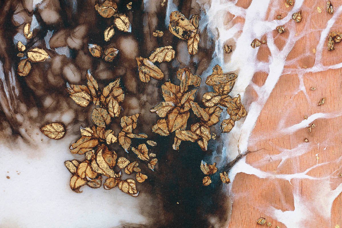 NB:- This piece has been printed on to Fine Art Paper and has been delicately embellished with gold leaf and then varnished so that it reflects the original piece. This piece is NOT Resined.