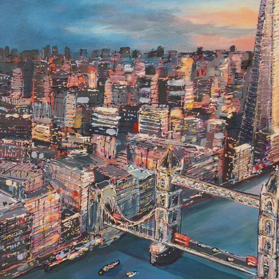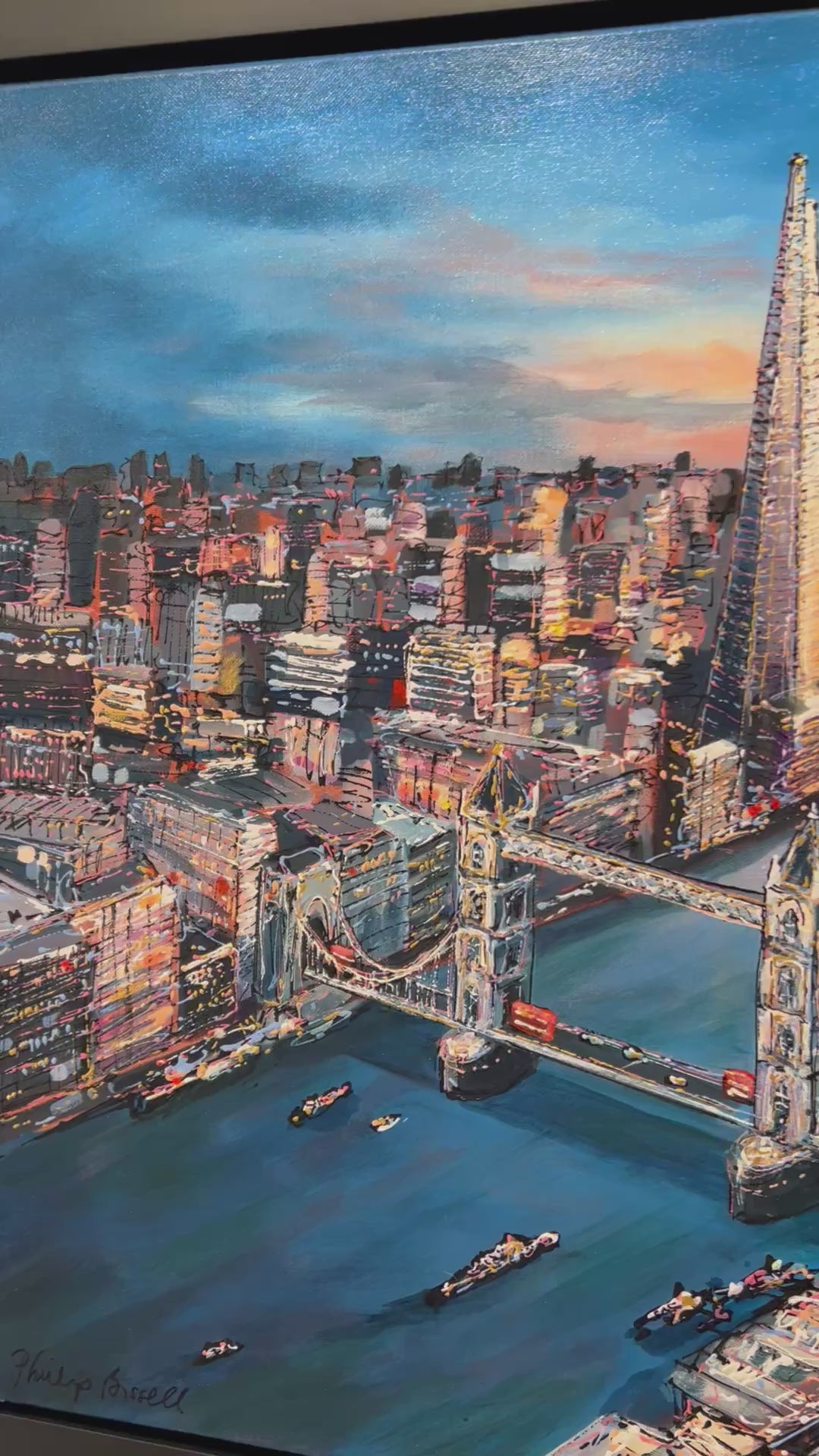Experience the beauty and vibrance of London with 'Thames View' ORIGINAL by Phillip Bissell. Gaze upon the iconic London Skyline as the beating heart of the city is captured in stunning detail. Transform any space into a place of wonder and inspiration with this one-of-a-kind piece.