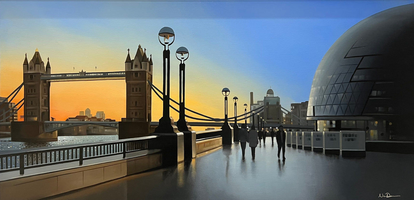 Experience the stunning cityscape of London with Thames Walk ORIGINAL by Neil Dawson. As a renowned artist, Neil expertly captures the timeless beauty of Tower Bridge and the Thames River. Add a touch of sophistication to your home with this exquisite piece.
