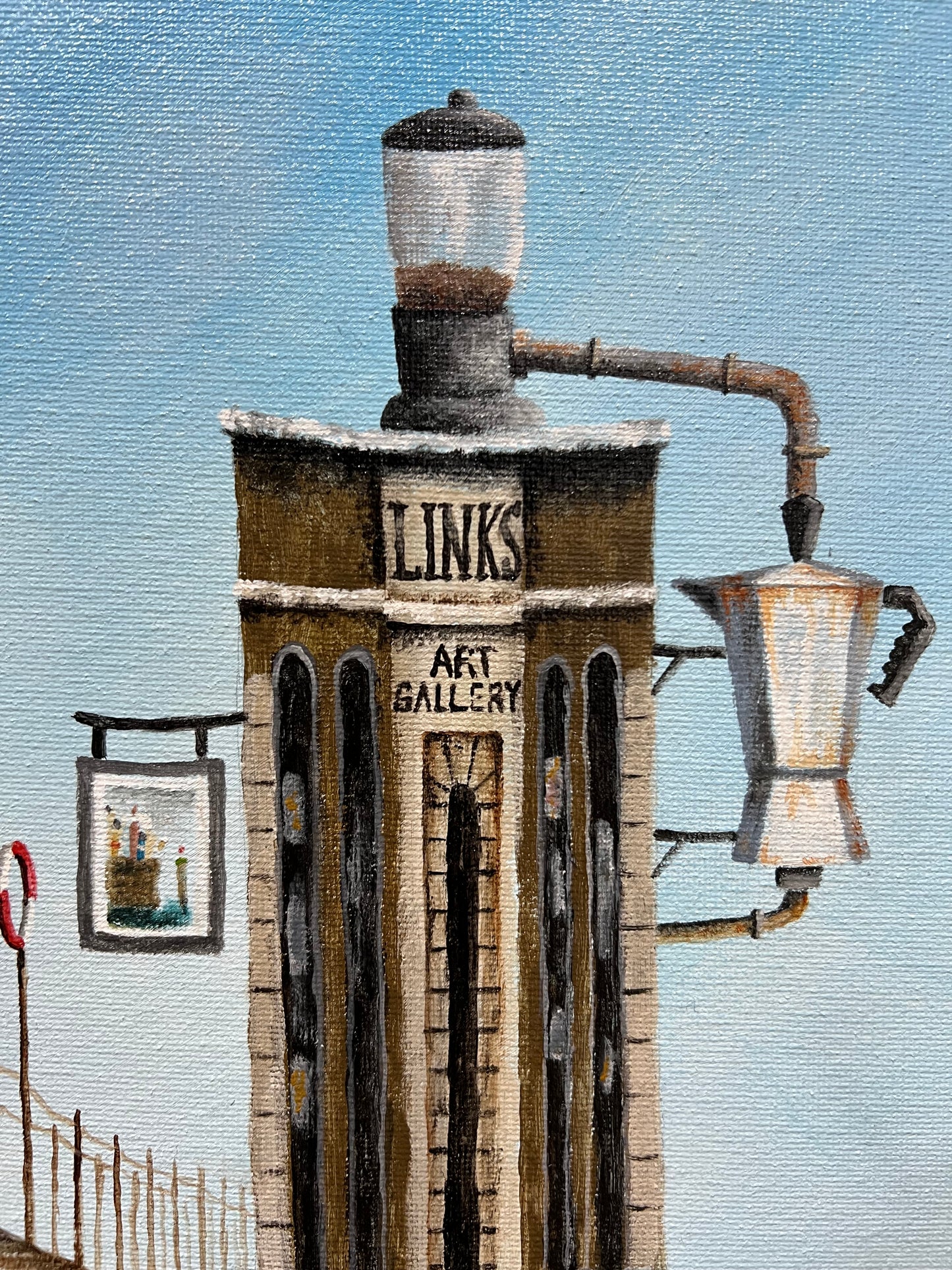 Say hello to this Deetz'original oil painting, 'The Whitley Links'. Enjoy a delicious snack in the cafe, maybe an icecream before looking round the art gallery, however you will need nerves of steel as you ride the waves in a boat before traversing the links to get to each destination!!