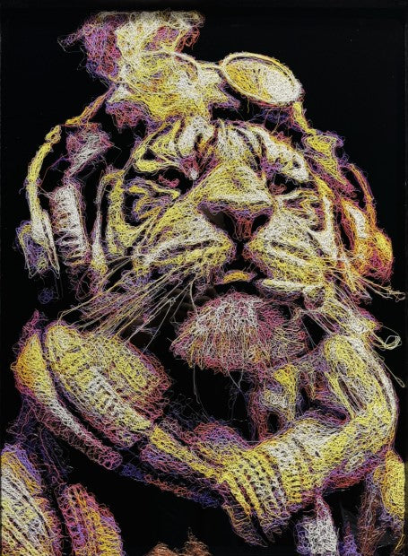 I like to think I am literally injecting life into scribble art with the use of syringes to create these free flowing fine lines. They start off very random but come together as the piece develops into its final form. This unique method of painting exhibits a special depth to each piece that changes throughout the day as the light hits the painting at different angles.