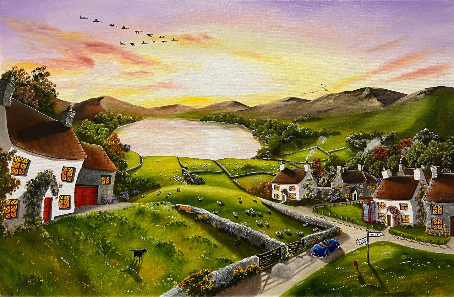 Experience the majesty of nature with this exclusive original painting by Caroline Deighton. Featuring stunning mountains and serene lakes, complemented by the graceful flight of geese. Let this masterpiece by Deighton become a treasured addition to your art collection.